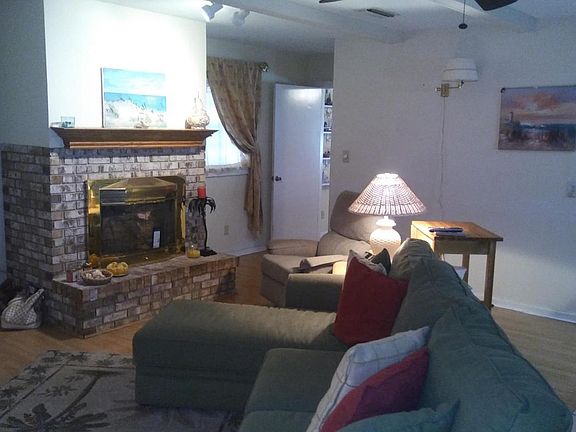OPEN HOUSE 2-4 PM JAN 29th Great Beach Home! New roof in 2010, HVAC 2009, All appliances replaced in 2005 and since this has always been a 2nd home they are like brand new. Spacious open floor plan: Kitchen has lots of counter space and solid wood cabinets, new appliances, ceramic tile floor. Living room has a very pretty brick fireplace that complements the flooring and gives the room a very welcoming appearance. Split bedroom floor plan with two large bathrooms. Giant Master has a nice living area as part of suite. Lots of closet space and storage of all kinds: including a nice detached work space, beautiful ceramic tiled carport and entry way. Two additional attached Utility, storage rooms! Auto Hurricane shutters with newer roof means a big break on Home Owners Ins