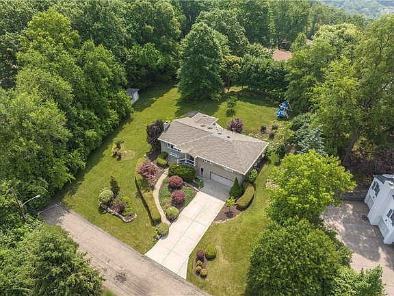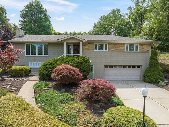Seated on a .56 park-like acre at the end of a no-through street, this expertly renovated brick ranch is a private respite. Washed with light through the thoughtful placement of oversized windows, glass doors and skylights, the beautiful, vaulted living spaces feature upgraded lighting, Peachtree casement windows, and pristine hardwood flooring. The kitchen is highlighted by rich cherry cabinetry & quartz countertops. 4-season sunrm w/ vaulted ceiling & skylights overlooks rear yd w/ tumbled paver patio. Master ste w/ dbl closets, vaulted bath w/ dual vanity & large ceramic shower w/ dual shower heads. Spacious game rm w/ surround-snd speakers & slate-trimmed gas FP. Furnished lower-lvl office. Lower-lvl mud rm & big 2-car garage w/ room for a workshop. Exterior includes custom-made garden shed w/ electricity & hose bib, swing set, irrigated landscaped yard & wide concrete drive. Updated from top to bottom. Ample closets & storage thruout. Easy access to I-79 as well as the city.