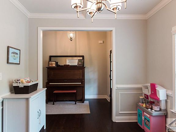 Open concept living in fantastic swim tennis neighborhood. Only a few years old, this home has all the finishes and features you are looking for - wood floors except for tile in bathrooms and carpet in bedrooms; white farmhouse kitchen with subway backsplash, stainless appliances, granite countertops and huge island; high ceilings with lots of natural light; owner's suite on the main level; large walk in closets in most bedrooms. The welcoming front porch leads to a spacious foyer that opens to the vaulted living room. On the right is a dining room with coffered ceilings which the current owners use as a playroom. The beautiful kitchen opens to the living room, breakfast room and overlooks the large back yard and patio. The owner's suite complete with en suite with soaker tub, tiled shower, two sinks, massive walk in closet and potty room rounds out the downstairs along with a laundry room (with sink) and powder room. Upstairs are three bedrooms - one with jack and jill bath and the other with an en suite. There's also a bonus room the current owners are using as a nursery but would also make a great playroom, office, or workout space. This sidewalk community has a beautiful pool and tennis courts ready for your enjoyment.