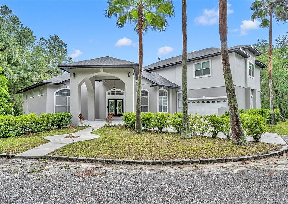 One or more photo(s) has been virtually staged. Welcome to Your Dream Estate! This exquisite custom-built home is your chance to own a piece of paradise. Nestled on 2.28 acres of majestic beauty, this property offers unparalleled privacy and tranquility, adjacent to a nursery and shielded from the bustle of city life. As you approach, the grand circular driveway, complete with dual entry/exit gates, provides a secure and impressive entrance. With parking for over 15 cars, hosting large gatherings will be a breeze. The front facade is impressive, featuring a Porte Cochére for convenient covered parking. Step through the double door entry into a grand foyer and dual formal living spaces, where nearly 16-foot ceilings and floor-to-ceiling windows bathe the rooms in natural light. In the west wing, the luxurious first floor owner's suite awaits, offering a private sitting area/office, an expansive bedroom with tray ceilings, and a spa-like bathroom with a corner jacuzzi tub overlooking the serene backyard, dual shower heads, and elegant tile work. The heart of the home, the newly remodeled gourmet kitchen, boasts under-mount lighting, timeless quartz countertops, and a full suite of stainless-steel appliances that will delight any home chef. It seamlessly flows into the breakfast nook with coffee bar and oversized family room, providing flexible space for any configuration. A conveniently located full guest bathroom with an egress door to back patio makes adding a pool an easy option. The well-appointed laundry room offers easy access to the oversized garage, which features overhead storage and tandem parking, all illuminated by ample natural light. Upstairs, two guest bedrooms share an updated Jack and Jill bathroom and private balcony access, while a massive fourth bedroom—nearly 30' x 30'—includes a walk-in closet, en-suite bathroom, and potential to serve as a multimedia room, game room, or an additional primary suite. The sellers have done extensive updates to this home including a complete remodel of the kitchen, new paint, replacing the roof and adding spray foam insulation to the enormous attic space to improve the energy efficiency. The expansive outdoor space is ideal for those with a love for adventure, and hobbies. With room for boats, ATVs, dirt bikes, and more, there's also space to add an extra garage, storage building, or workshop. This property is agricultural zoning A-2 and has no HOA. An Oversized septic tank allows opportunity for a mother-in-law suite, guest house, or second home addition. This is truly an impressive offering full of endless potential. Schedule your private showing appointment today!