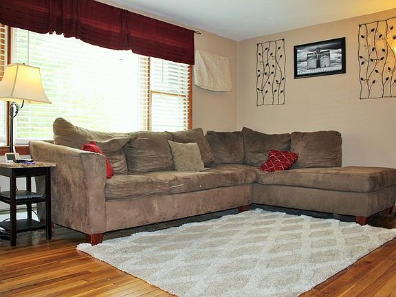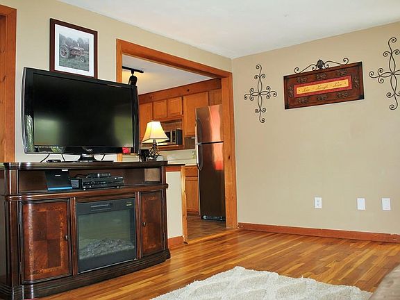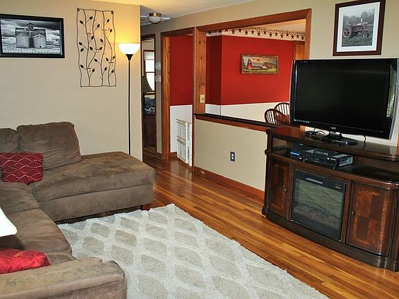 It's larger than it looks! This move in ready Ranch style home will surprise you, with the open floor plan that all buyers are looking for. The walls between the kitchen, living and dining rooms have been opened up offering clear views between the rooms, and the dining room offers a slider that opens onto a deck overlooking the backyard, complete with a fire pit. Offering refinished hardwood floors in all but the kitchen and bath on the first floor, all you'll need to do is bring the moving truck. The large master bedroom can easily accommodate king size furniture and features a sliding glass door out onto the deck. The second bedroom is also well sized. The full bath has been recently remodeled and feels modern & clean. Bring your ideas for the expansive bonus/family room in the lower level, which has been updated with brand new laminate floors, fresh paint and plenty of lighting. A spacious laundry area and a newer oil fired boiler complete the basement. Town water and sewer as well.