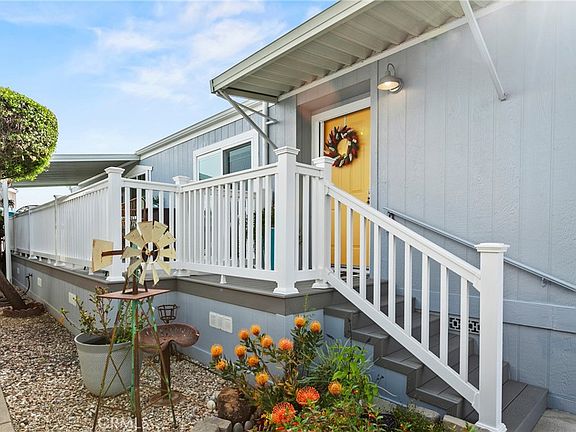 Welcome to your beautifully updated coastal retreat in the sought-after 55+ community of Hacienda Del Pismo. This light filled 2-bedroom, 2-bathroom home offers a fresh, open feel with vaulted ceilings, a cozy fireplace, and built-in cabinets that add both charm and function. The bright kitchen features new appliances, a bay window, skylight, and quartz countertops. The new sliding glass doors in the dining area open to the deck—perfect for entertaining while enjoying the coastal sunshine. The spacious primary suite includes sliding glass doors that lead out to the expansive deck, ideal for morning coffee or afternoon relaxation. The wraparound backyard includes new pavers, an outdoor shower and space to lounge or entertain. Light gray walls with blue and grey accents bring in that relaxed, beachy vibe throughout the home. Additional features include new flooring, new windows, new plumbing, new hot water heater and a new roof! You will also find a 10' x 10' custom shed with lighting and electricity, and a 2-car carport. Hacienda Del Pismo offers low space rent, a pool, jacuzzi, saunas, billiards, a dog park. This turn key home is just a short stroll to the grocery store, restaurants, coffee shops, and, of course, the beach. Now, it's your turn to enjoy the Pismo Beach life! Financing is available for manufactured homes in parks with space leases. website: https://view.knapp-media.com/order/27d15c60-ddbb-4263-b48f-08dd98581059?branding=false