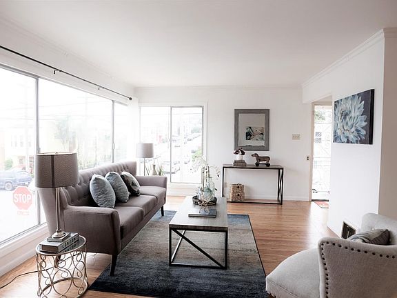 Lovely house on corner lot location. Gleaming hardwood floors all through out. Large, bright kitchen w/ new tile flooring, Built-in appliances . Large basement w/ 2-car garage, side-by-side . Good size backyard w/ fruit tress. Well maintained by same owners for over 40-years. Close to most conveniences; transportation, stores, shops & BART station a few blocks away. Great sunny side of San Francisco.