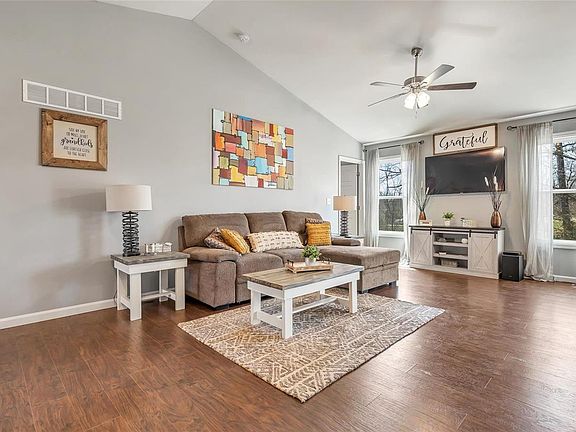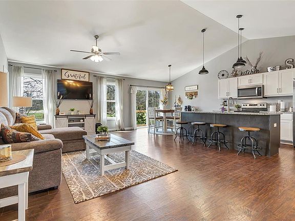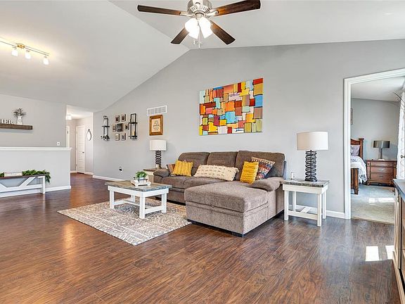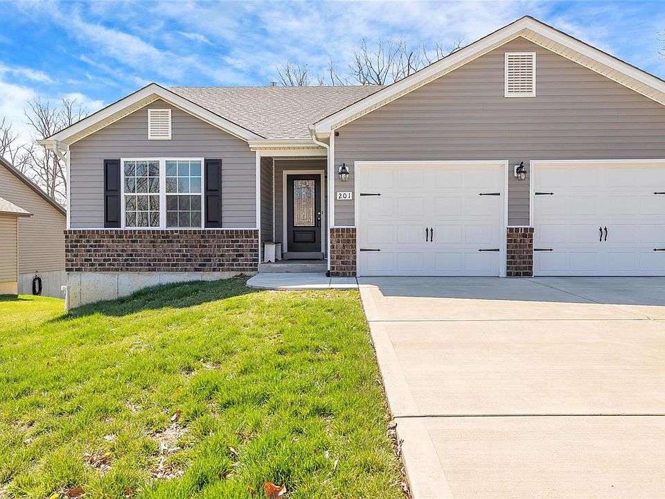 You'll fall in love with this 3 year old Contemporary 3 bedroom, 2 bathroom home in Wright City’s Spring Lake Subdivision. This beautiful home offers an open floor plan, divided bedrooms for privacy, stunning wood veneer flooring, entry foyer and vaulted Great Room. Gorgeous kitchen featuring white custom cabinets, granite countertops, sprawling center island and stainless steel appliances. Plus Barn Door Entry Main Floor Laundry. Primary Suite has additional vaulted ceiling too. Walk in closet and barn door entry to luxurious bathroom with adult height double sinks, large walk in ceramic tiled shower with center shower head. Additional upgraded Riverside Panel Doors throughout home. Plenty of storage with lower level walk out basement ready to be finished. This gorgeous home back to trees for even more privacy. Also includes a Double Door oversized garage. This home checks all the boxes!