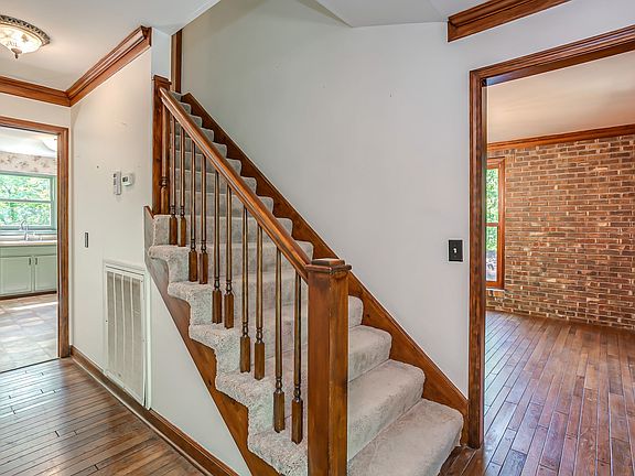 Nestled on almost 2 acres of lush greenery, this beautifully maintained home offers an idyllic retreat from the hustle and bustle of city life. The expansive property is surrounded by nature, providing a serene and peaceful setting that's perfect for nature lovers. The replacement windows throughout allow plenty of natural light to flood in, creating a warm and inviting atmosphere. The basement offers plenty of room to expand and add more square footage. Additional features include a 2 car garage and a cozy wood-burning fireplace. Don't miss out on this amazing opportunity to own a piece of paradise in a highly desirable location. ** Pictures with furniture/kitchen island are virtually staged **