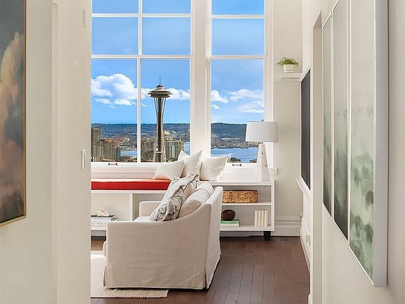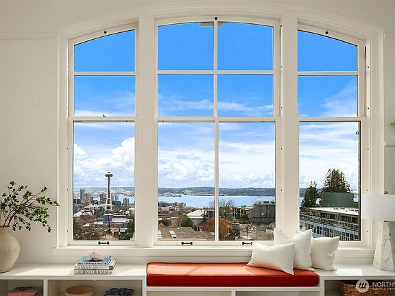 Newly renovated ideal top SE corner home in the historic Queen Anne High School is move in ready! Incredible views span from Puget Sound to Mt. Baker - the view will have you mesmerized. Lie in bed and watch the city lights shimmer and wake up to glorious sunrises. New oak hardwood floors, new kitchen remodel and fresh paint - the unit is ready to entertain. Open kitchen w/ a large counter eating space flows into the great room w/ the ultimate Frasier view. 2 bdrm, 1.75 bath w/ 2 garage pkg spots & EV charging, bike storage and a large storage space make this unit unparalleled. Epic shared rooftop deck for outdoor parties and BBQs available. Prime location, close to everything Queen Anne and Seattle Center have to offer. Perfection awaits!
