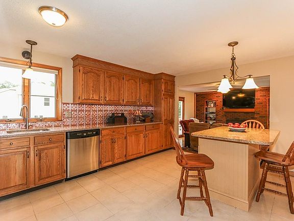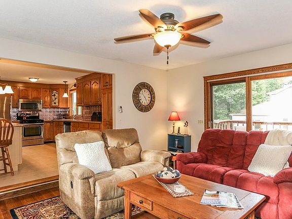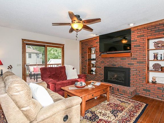 PRIDE OF OWNERSHIP shows in this vinyl sided cape offering ample living space & convenient location near Heritage Park, shopping & schools. Welcoming entry highlights open living & dining room spaces both w/wide plank, pegged wood floors adjacent to updated kitchen featuring quartz countertops, wood cabinetry, tile flooring, stainless appliances & center island providing storage & seating. Kitchen opens to family room showcasing gas fireplace w/brick surround & flanking custom built ins & slider leading to wood deck overlooking backyard w/its storage shed, lower level patio, hot tub & stone walls. Convenient bedroom and/or home office w/hardwood flooring & closet plus full bath w/tile flooring & new satin nickel fixtures complete the first floor. Second floor features two generously sized bedrooms w/hardwood flooring & plenty of closets & bath w/cherry cabinetry & quartz top. More living space in walk out lower level featuring home's THIRD fireplace, built in work station & custom bar