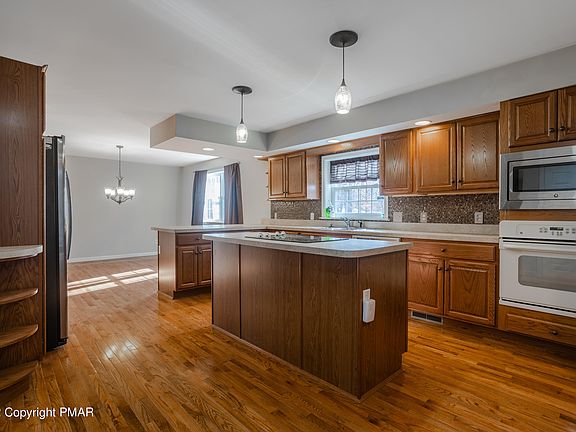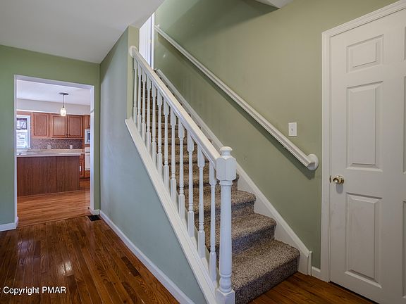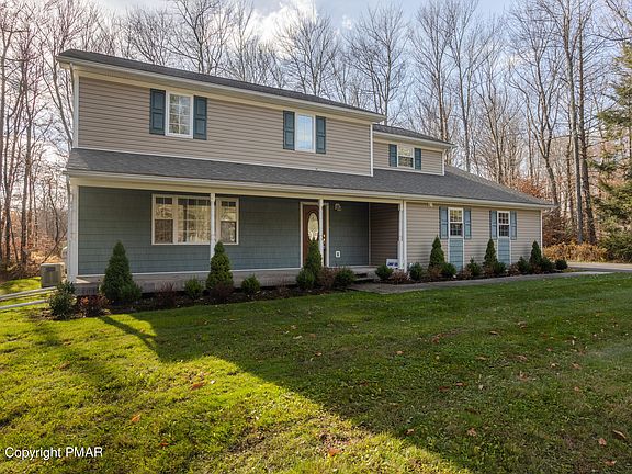 Picturesque Colonial home with a spacious front porch, Situated in a lovely STR Community! Among its many features is a spacious living room and a large family room with gas fireplace! A kitchen with a breakfast bar and a beautiful office area with a built in Desk. Primary Bedroom Suite with a primary bath and 3 additional spacious bedrooms. All New Carpeting in Bedrooms and family room. Plenty of added space with a full unfinished basement with Superior walls and a French drain. An oversized 1.5 car garage and paved driveway for plenty of parking. A back patio and a stand-alone generator complete this lovely home! Great location, close to I-80, and all Pocono Attractions! Schedule your showing today to appreciate all this property has to offer!
