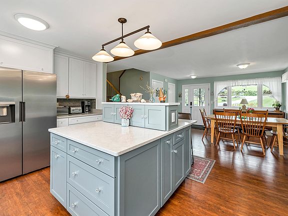 This spacious 5-bed, 2-bath home on 7.5 acres offers the perfect mix of privacy and convenience in the scenic New Hampshire White Mountains. An entertainer’s dream – from the recently installed chef’s kitchen, to the heated in-ground pool with mountain views – this gorgeous Cape Code style home has something for everyone! Two first floor bedrooms, including a master bedroom with large walk-in closet. Open concept kitchen and dining room area with a sunken living room which includes a gas fireplace, stone hearth, vaulted ceilings, and glass slider to patio. Also on the main floor, the large wood paneled family room walks out to a spacious gated and paved pool area as well as the attached two car garage with bonus bedroom. The combined family room/mud room includes built-in lockers for convenient storage for any extra coats and gear. Upstairs there are two additional bedrooms, a large bathroom with linen closet, as well as attic storage. The large partially finished basement has been used as an additional playroom/den with bulkhead access and plenty of additional storage space. Take in the peaceful fresh air from the covered front porch. Enjoy the view and visits from local wildlife from the back deck with built in benches, patio, or the childproof fenced in pool area. Expansive lawn with mature landscaping. Located on a town maintained paved road, less than 3 miles from groceries, restaurants, and local hospital! Easy access to skiing, hiking, and commutes via I-91 and I-93.