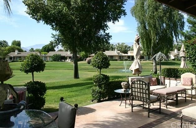 The views are looking So. over the golf course, 2 water features to the Mountains, FANTASTIC peaceful views. Perfect for primary home or second home. We have two of most everything, down to sofa cushions & pillows to silverware and plates. Floor plan is 3 bdrm. 2 bath, nicely remodeled with Granite kitchen counters, custom hardware & beautiful Golf course views from the kitchen & living room. Interior Atrium brings in great light, but many have converted to living space. No carpeting except area rugs makes the 20" tile flooring easy to take care of. Wife is an Interior Designer, so you know the furniture, upgrades & attention to detail makes this home stand out in a good way. The lockable gated courtyard entry adds to the great privacy. Both bedrooms have King beds, den has an Aero bed, which is a hide-a-bed with inflatable mattress, much more comfortable than normal one. The fireplace is stacked stone surface up to the vaulted ceiling. There are TVs in every room except the bathrooms. 27 hole course, guard gated community, 36 pools/spas. WOW!!!!!! Once you see it in person, I think you will fall in love. Centrally located within minutes of El Paseo with shopping & dining as well as The River center with theaters, dining & shopping, guard gated community.