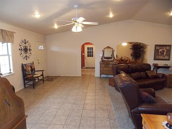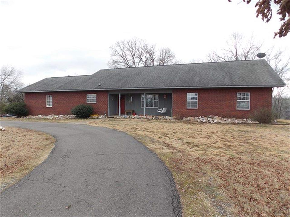 Red brick perched on a hilltop with mountain views, sun room and patio. Front door enters into a 672 sf living room with wood-burning fireplace and vaulted ceiling. Home also features custom showers, orange peel texture on ceiling and walls, formal dining.