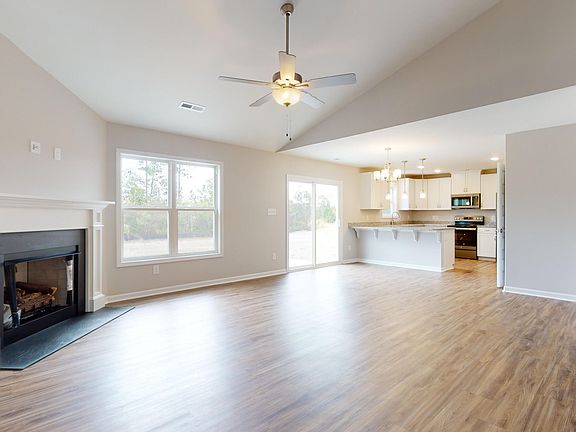 The Pamlico Floor Plan, as part of our Carolina Series, is a one-story floorplan with three bedrooms, and two bathrooms. This home features a great room open to the kitchen with tons of countertop, sitting bar top, and dining area. Rooms are down the hall with the Owner's Suite on the back side of the home, and the guest bedrooms facing the front. Just off the kitchen you will find the laundry room with garage access, and a walk-in pantry. The Mill at Heritage Farms community features for this plan will include a propane gas fireplace, garage service door, and dual vanities in the owner's bathroom. 201 Grist Mill Drive will also include rear covered porch.