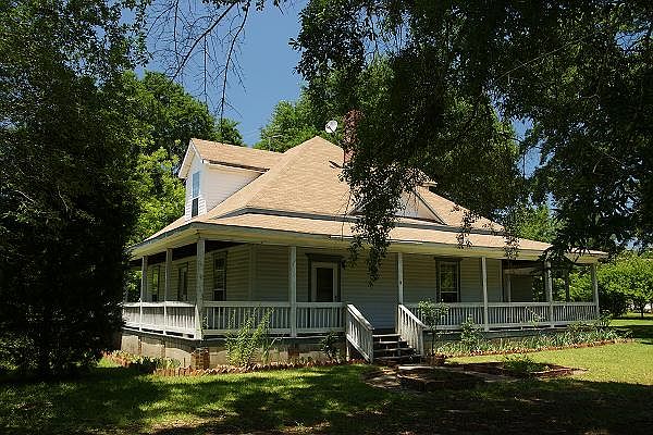 Wrap around porch 1150 sq ft, large rooms, 11' ceilings located on 2.11 acres with three grape arbors and two outside storage buildings. Second floor has 450 sq ft and huge attic storage areas.