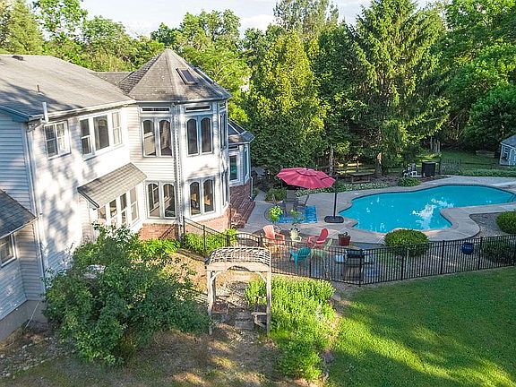 On a peaceful cul-de-sac, this spacious countryside retreat is surrounded by 1.77 wooded acres. Well suited to entertaining with a formal living and dining room, family room, sunroom and solarium with spa. Kitchen has updated cabinets w granite countertops. Two bedrooms and bathrooms downstairs, one ensuite, with additional half bath. Upstairs there are two large bedrooms; the Master w ensuite has new premium hook and loop carpeting w upgraded padding and an oversized walk-in closet. The resort-style backyard is a place for making memories, with a sparkling gated pool and koi pond with waterfall. Sizable walkout basement with wet bar and a 22x27 finished storage area. $70k of upgrades since 2016; new driveway, resurfaced pool w new heater, landscaping w flagstone stairs, kitchen picture window, garage doors and A C. Brand new septic holding tanks and distribution boxes to be installed prior to closing!