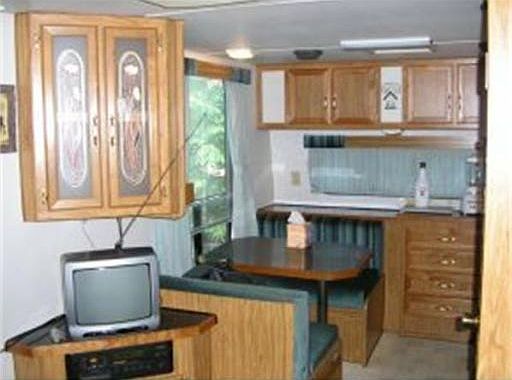 Well maintained 5th wheel RV with attached screen porch and deck. Storage shed, private location in Arcadia Campground condo.