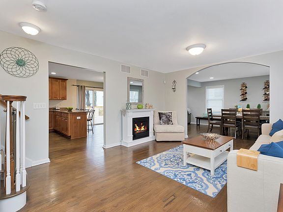 This house is a beautifully renovated Colonial that features stunning hardwood floors throughout.Open floor plan LR, DR, and updated eat-in kitchen granite countertops SS appliances. Off of the kitchen, there are sliding doors that lead to the deck in the backyard. The backyard has a patio and a mature yard that has complete privacy with white vinyl fencing, four bedrooms w/ walk-in closets, there are two and a half updated bathrooms and has easy access laundry room placed on the bedroom level. The Master Bedroom has cathedral ceilings and lots of natural light to brighten your day, with a walk-in closet and master bath for your own privacy.There is a full basement with a side entrance. House is freshly painted and located perfectly close to the bus, train station, and shopping.