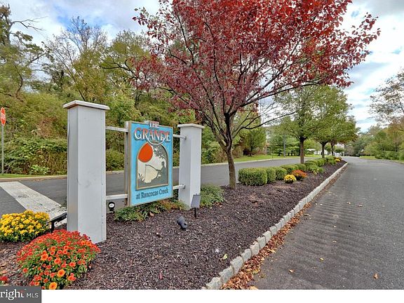 Home of Distinction in The Grande, a beautiful well-maintained community. Turnkey, 15 year old, warm and inviting, 2,070 square foot, end-unit town home flooded with daylight has been upgraded with many quality features including new hardwood floors, new carpet, new granite and tile backsplash with under-counter lighting, recessed lighting, oversized deck, plantation shutters. The first floor is spacious and open with 9 ft ceilings and an open floor plan. The formal living room is washed with sunlight from the upgraded bay window. The dining room is a marvelous space with another upgraded bay window. Gas fireplace with slate surround in family room warms the room. Upgraded recessed lighting and ceiling fans. Kitchen has 42" maple cabinets, tile floor, Maytag applicances - microwave, dishwasher, gas range, refrigerator and breakfast area leading to deck. Beautiful master bedroom, 2 closets, large bath with garden tub, shower stall, double-sink vanity. Three additional bedrooms. All baths have maple cabinets, marble tops and ceramic floor. Second floor laundry. English Basement. One car garage with new opener. High efficiency 90% furnace and 13 Seer A/C. Family-oriented neighborhood with excellent public schools. Delran school system has 2,924 students in grades PK, K-12 with a student-teacher ratio of 14 to 1. There is a beautiful pool, club house with fitness center and tennis courts. Plenty of parking. Close to recreation facilities. Neighborhood is safe and extremely well-maintained. Close to 295 and 130. $250 HOA fee covers all exterior maintenance, landscaping, snow removal, pool and tennis court. BUYER'S AGENT PROTECTED
