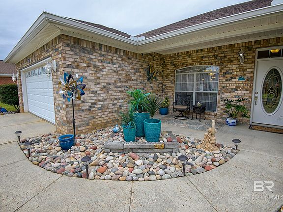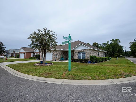 Beautiful 3 bedroom 2 bath Brick home home in the highly sought after Live Oak Village. This community is an Active 55+ Community with lots of amenities. There is a beautiful club house for indoor activities, exercise room, Pickle Ball courts, indoor pool, and a large outdoor pool. This home is located on a quiet corner lot with a peaceful view of the pond and fountain. From the moment you walk into the home, you notice the open floor plan and all the natural light. The oversized dining room will allow you to entertaining all your friends and family. All the Appliances in the kitchen were purchased in 2021. The Primary Bedroom is perfect for a king size bed and more! The Primary bath has a vanity with two sinks, a lovely soaking tub and a walk in shower. The Primary closet is huge! There is no carpet in the home! Tile through out the home. Notice all the "extra" details in the home; cultured marble window seals, pocket doors, crown moulding in the living areas and primary bedroom, and the entire interior of the home has been freshly painted. The OUTDOOR AREA is amazing area of the home. The large screened in porch is perfect for all your outdoor entailing needs. The 20x15 additional patio area is a lovely addition to South Alabama living area. This home has tons of storage. This home has the Garage heated and cooled! You are minutes from South Baldwin Medical, shopping areas. the OWA Entertainment area, and the sandy white beaches of the Alabama Gulf Coast. No need to worry about lawn work, it is included in your low monthly dues. Come enjoy the Coastal life! This is a must see!