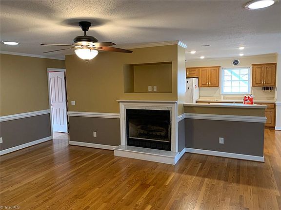 Very nice brick home in desirable neighborhood in Randleman. Split floor plan. Home has real hardwoods, gas fireplace, Newer Trane HVAC, New water heater, large master, master bath has soaking tub and shower, large garage with insulated doors. Full basement partly finished with full bath that could be game room, movie room etc. Other half of basement is workshop with walk out door.
