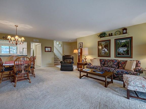 Highlands Mountain Club is a very desirable place to live! Where else can you find a 3 bedroom, 2 bath home, close to town, with its own club house, tennis court, and swimming pool at this price? This is a friendly community of people who gather weekly at the community club house for pot luck, tennis, swimming, and other activities. This handsome unit includes 3 bedrooms and two baths. The master with its walk- in closet is located on one side of the living area, with the two guest bedrooms on the other side, providing privacy to all. A beautiful stone, wood-burning fire place has been converted to gas logs for instant warmth and convenience on those chilly mornings ( It can easily be converted back to wood burning if so desired!). Central air conditioning assures comfort when needed, although the mild temperatures in the mountains often call for wide-open windows and doors to catch the mountain breezes. Sliding glass doors provide access to the deck from living room, master bedroom, and one guest room. There is nice carpet throughout, but wood floors are also allowed in the lower units if so desired. Another plus is that there is ample storage beside and under the stairs. Some owners even us the space for an office! Just a few minutes can find you in downtown Highlands for shopping, dining, movies, library, a magnificent museum, and a center for the arts. Don't miss this chance to live in a wonderful community at an excellent price! You won't be sorry!