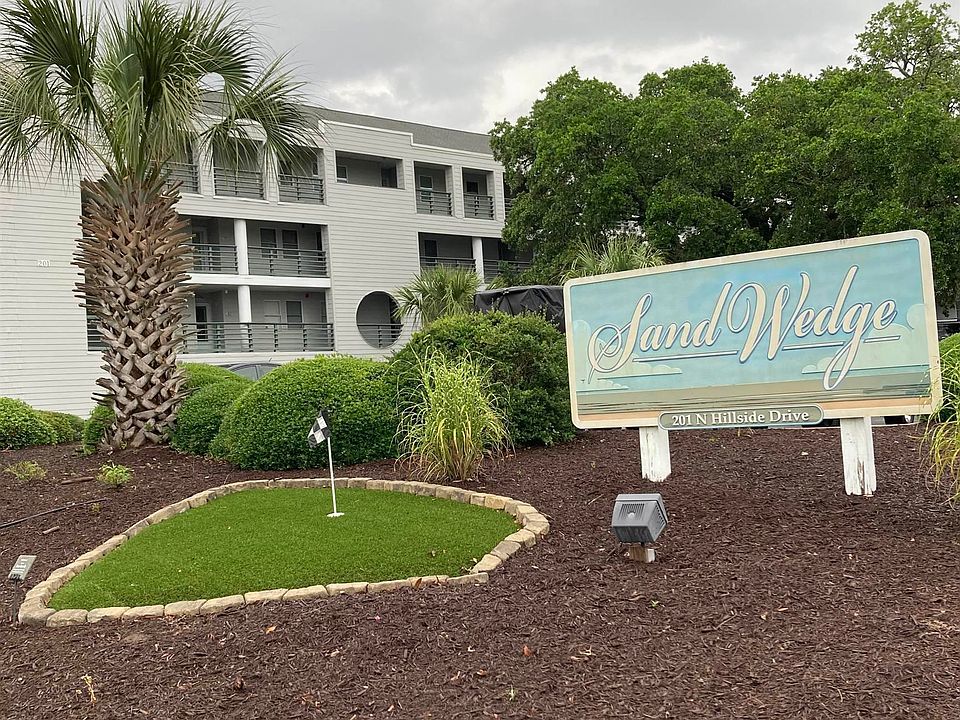 Sandwedge is conveniently located on the corner of 2nd Avenue North and Hillside North. Condo is one block from Main Street, Ocean Drive where you will find restaurants, shopping, Fat Harold's for dancing and their grill, Hoskins Restaurant and other eateries. You can easily stroll to the beautiful Atlantic Ocean beaches. While at the condo, you may enjoy the pool, the hot tub or relax on a spacious deck area. An elevator is centrally located to take you to this first-floor unit which is fully furnished including a washer and dryer. The kitchen has been updated with newer cabinets and solid stone countertops. Both of the full bathrooms have been updated and tile flooring has been installed throughout. The unit has smooth painted ceilings with several ceiling fans and adequate lighting. Cable TV and internet access is also included. Located off balcony is an attached storage room.