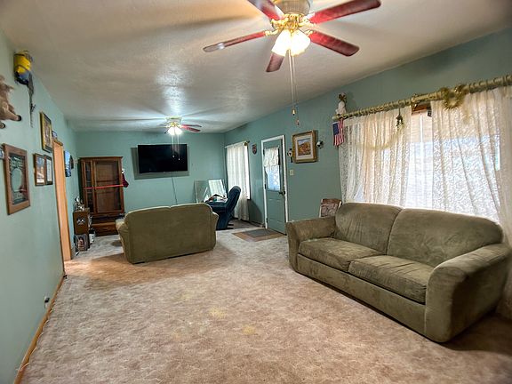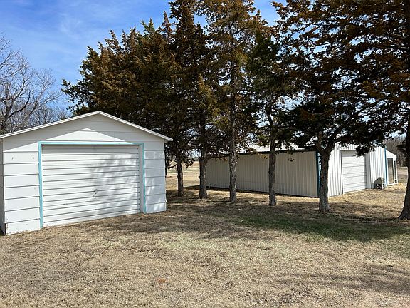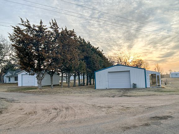 Located in Prairie View on the edge of town is this 2 bedroom, 1 bathroom home with a large living room. The kitchen offers several cabinets and stove and portable dishwasher to remain. The bathroom has built in storage along with a handicap accessible shower. The two bedrooms have adequate closets along with one bedroom closet being used for the laundry units which can remain. To the back of the home is a spacious enclosed porch. There is a partial unfinished basement. The home has central ac/heat, roof replaced in approx. 2016. There is an underground sprinkler system, water well, and lots of room for a large garden. You won't be short on outdoor storage with a steel frame heated 24'x36' shop, and 2 detached garages, 14'x24' & 16'x19'.