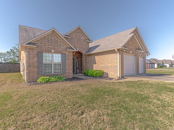 Welcome to Market 201 Hollis St. of the Craftsbury Village Sub. in Bono, AR within the Westside School District. Situated on a .40+/- acre fenced & tree lined lot is a 2011 built traditional style home wrapped in brick, topped w/ architectural shingles and accented by a mature Willow tree, gorgeous landscaping, shutters, gutters, a covered porch & patio, outbuilding, and 2 car garage w/ built in storage room & storm shelter. The interior features 1,987 sf of well laid out living space over 2 levels. The main level features an open concept living/dining/kitchen area w/ a large living room w/ concrete flooring & rich crown molding, dining room w/ arch accents, eat-in kitchen w/ bar seating, stainless steel appliances, ample cabinet & countertop space, and access to the patio. The Master wing includes a large bedroom w/ tray ceiling, walk-in closets, and an en-suite w/ dual vanity walk-in shower & jet tub. The spare wing features a bedroom and bathroom w/ shower tub combo. Upstairs is a landing, 2 bedrooms & bathroom w/ shower/tub combo. Conveniently located near favorite local amenities w/ easy access to the Interstate and 10 minutes to Jonesboro. Call to make this house your home.