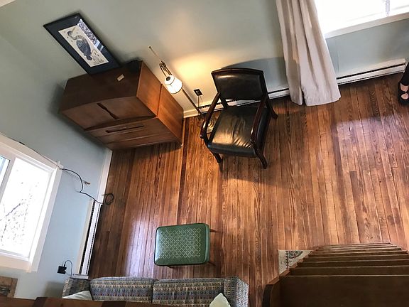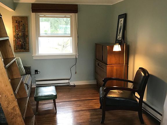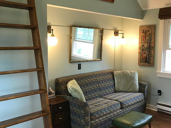 This charming, completely renovated apartment with loft bedroom is located in the city of Ithaca on West Hill. It's a private (above detached garage), tastefully furnished, light-filled space with vaulted ceilings that is within easy walking distance of Cass Park and the Waterfront Trail. Relax outdoors on your deck and enjoy seasonal views of the city and Ithaca College. It's perfect for a single person. * New, energy efficient windows. * Wood and tile floors. * Large double closet and extra storage space under the eaves. * Bus #14 stops in front. * Free off-street parking. * Electric heat has a separate control in each room. Average $65 per month. * Water bill is $55 per month. * No smoking * No pets Tenant responsible for utilities. No pets: please do not apply if you have a pet.