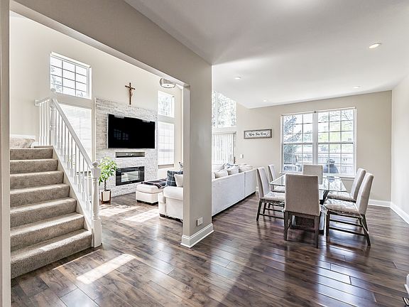 BEAUTIFUL END UNIT! This 2 Bedroom, 2.5 Bathroom home is move in ready. *Main Level* Boasting a open 2 story living room with cathedral ceilings brings in a abundance of natural light through the many windows and a stone-faced fireplace for warmth and ambiance. Dining area has plenty of room for a large dining table and guests for entertainment. Walking into the updated eat-in kitchen you are greeted with beautiful granite counters tops, stainless steel appliances, gorgeous neutral backsplash and plenty of cabinets for storage. *2nd Level* Make your way upstairs to the spacious loft area that overlooks the living room which can also be turned into a 3rd bedroom if desired. The master bedroom is a great size and includes a master bath with glass shower and soaking tub. Custom closet shelves have been installed. The 2nd bedroom is across the hall and is nice size as well right next to the 2nd full bathroom. The Laundry room on the 2nd floor includes a new washer and dryer that was installed. *Exterior* You will find a large private side and back common area to enjoy. Asphalt Driveway and plenty of guest parking is available close by. Don't worry about additional expenses as you can move-in without worry. UPDATES INCLUDE: Roof 2017, Furnace 2022, AC 2022, Washer/Dryer 2022, Carpet 2021, Fresh Neutral Paint Throughout Home 2023. Walking distance to shopping, restaurants and movie theater. Ponds and walking paths also very close by. Schedule your showing today!