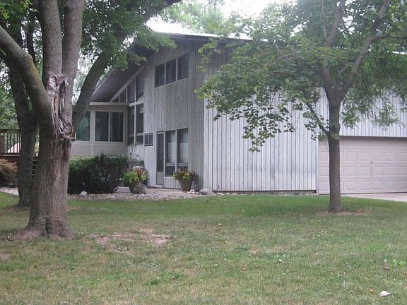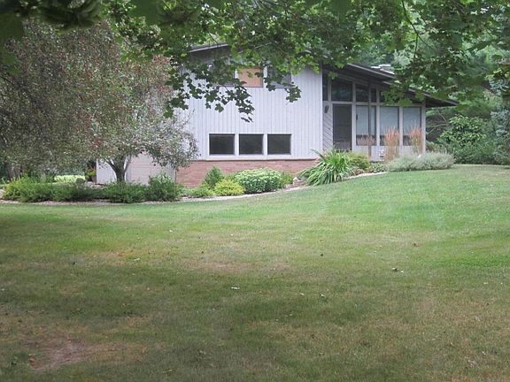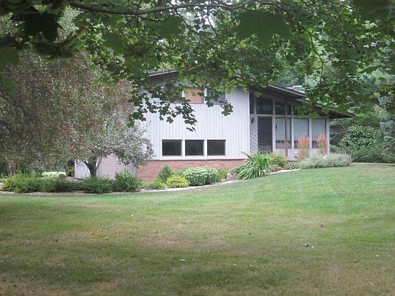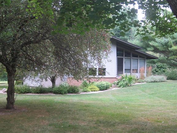 Contemporary 3 bed, 2 1/2 bath, 3 season glass porch with large deck area. 2 stall attached garage and another stand alone garage. Natural gas, A/c and beautiful views. Borders golf course.