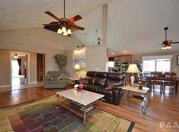 Great location for this fantastic custom built home in Hickory Hills. Fully applianced kitchen w/Cambria countertops, double pantry, island & breakfast bar. Spacious living room with cathedral ceilings & fireplace. Amazing master suite with jetted tub, walk-in closet & sliders to wrap around deck. The walkout basement is finished to impress with a custom built wet-bar, family room w/fireplace, 4th bedroom, storm shelter, and exercise room! Oversized garage with workshop. Another neat feature is the custom spiral-case that leads to the loft style bedroom.