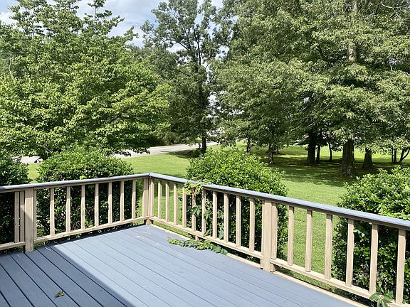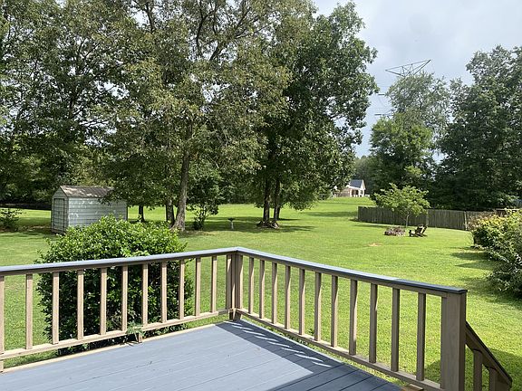 Nice brick home on corner lot in Jennings Point. Great location close to town, school and all local amenities. Vaulted ceiling great room, built-in cabinetry, finished wood flooring, crown molding, kitchen with breakfast area, pantry and two additional closets in kitchen area, laundry room, large formal dining room with soaring ceiling, trey ceiling in primary bedroom, 3 large windows with a beautiful view to back yard, private bath with walk-in closet, split bedroom concept. Double car garage w/ extra parking in concrete driveway. Updated deck. Nice storage building. Lot backs up to Jennings Point greenspace....so private and beautiful for outdoor activities.