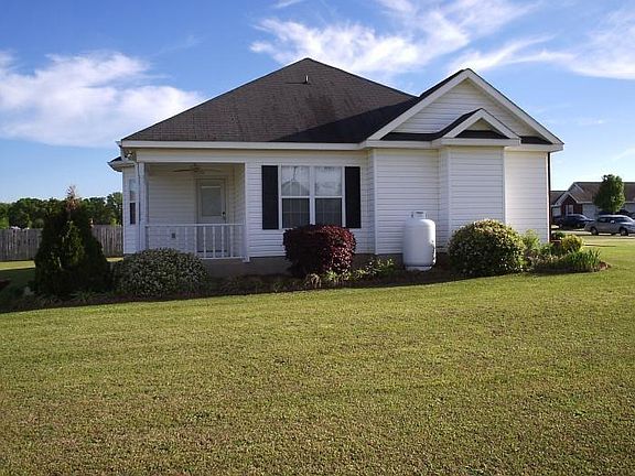 ALL INQUIRIES MUST BE MADE BY PHONE. Immaculate and inviting home, with 3 bedrooms, 2 Full baths and a 2-car garage. Located just off the new Russell Parkway ext. in the convenient and family friendly Trotters Ridge subdivision, this home boasts great school zones and is only minutes from restaurants and shopping (& within walking distance of Lake Joy Elementary and the new Walmart grocery!) This lovely home enjoys a roomy corner lot, an extended patio and covered back porch, plus a matching outdoor storage building that is wired and lighted with shelving installed. Enjoy volume ceilings in common areas and trey ceilings in all bedrooms. Master bath has both a garden tub and shower. Charming kitchen has bay windows, smooth top stove and a pantry. Full yard sprinkler system. Blinds throughout. Approx. 1460 sq. ft. Highly dependable landlord. No pets or indoor smoking allowed. Owner is a licensed Georgia Realtor.