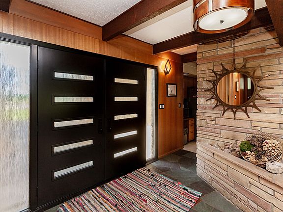 You'll fall in love with the incredible curb appeal and generous size of this stunning property! Situated on a spacious corner lot, this home offers nearly ¾ of an acre of beautifully usable yard space. The corner location also provides the convenience of a drive-through driveway perfect for easy access and extra parking. As you approach the home, you're welcomed by charming wrought iron gates leading into a private vestibule, where elegant double doors create a grand first impression. Step inside and immediately enjoy the abundance of natural light that fills the space. The expansive living room features a striking stone wood-burning fireplace and flows seamlessly into a spacious dining room ideal for entertaining. Gleaming hardwood floors run throughout most of the home, adding warmth and character. The kitchen opens up to the dining area and boasts ample cabinetry, a stylish range hood, and a functional layout. Just off the kitchen is a versatile nook perfect for a pet area, pantry, extra storage, or a creative workspace. You'll also find a convenient half bath and a third, non-conforming bedroom that can easily serve as an office, den, or guest room. On the opposite side of the home are two oversized bedrooms and a full bath, providing privacy and comfort. The main-level laundry room adds everyday convenience. Step outside into your own private oasis.