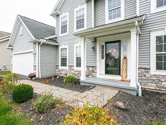 Spectacular awaits! This move-in ready 2009 colonial located in a picturesque, tree-lined neighborhood is awaiting its next lucky owners! Prepare to be impressed with the impressive two-story foyer, gleaming hardwoods, open airy layout and abundance of natural light. The expansive living room opens up to the well-equipped eat-in kitchen (SS appliances, quartz countertops, etc.) complete with a slider to the large deck out back; ideal for entertaining! The first floor also features a formal dining room, half bath, first floor laundry and mud-area off of the attached two-car concrete floor garage for ultimate convenience. The second floor boasts 4 bedrooms and 2 full baths, including the primary suite with an attached bath and walk-in closet. The basement is dry with high ceilings (approx. 12 ft), perfect for all your storage needs and easily finish-able if desired! The lot is one of the largest in the neighborhood and offers unique privacy within a neighborhood setting. The 2x6 exterior walls demonstrate quality of construction. Close proximity to RIT & UR. Don't wait! Book your showing today so you can call this special place "home." No negotiations until Friday, 11/1 at NOON.