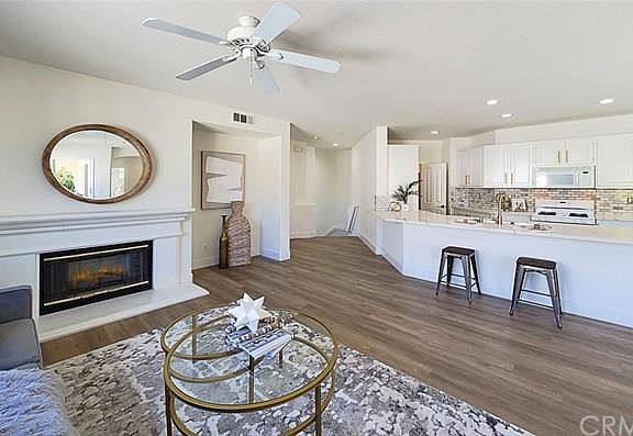 Gorgeous End Unit.. Bright and Spacious 2 bed/2 bath with nobody above or below in the beautiful community of Painted Trails. Built in 2000!! The end unit location is on a Cul-De-Sac! There is an attached and direct access 2 car garage. As you enter the condo, you have a spacious landing that leads up the stairs to the main living area and oversized outdoor covered balcony large enough to enjoy outdoor BBQs. The ceilings are high, the floorplan is wide open, and the kitchen is super roomy with New quartz Counter tops, Custom marble backsplash, walk-in pantry, tons of storage space, and an enclosed laundry room just steps away! Spacious open floor plan which is perfect for entertaining with New laminate floors. Right off the dining room is a sliding glass door leading to the large, covered balcony. The balcony is another great place to entertain! Lots of space for patio furniture and a BBQ! The kitchen has white crisp cabinets, New Quartz counter tops, & tons of counter space for bar stools & a walk in pantry with more than enough kitchen cabinets! Directly next to the kitchen is a laundry room. The master bedroom is at one end of the condo and has a generously sized walk-in closet, ceiling fan, arched entry to the en-suite bathroom with double sinks, shower/tub combo and separate water closet and linen cabinet. The secondary bedroom is at the other end of the living room with ceiling fan and sliding glass doors leading to the outside balcony. There is a secondary full bath with New quartz counter tops in the hall with a tub/shower combo. Enjoy all the Painted Trails amenities, trails, parks, pools and basketball courts.