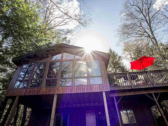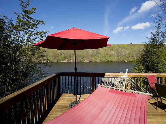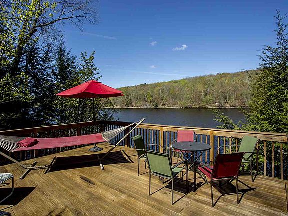 Catskills Sunset Views Lake House Getaway. Only 90 min from GWB. 3 BR, 2 1/2 baths, 2 decks and ramp to your own dock on the longest motorboat lake in the county. Ultimate great room has cathedral ceilings, lots of glass and light, big dining area, fireplace of course, fun kitchen. You'll love the "Skylight Lounge," your lake view cedar 3 season sun room with mirror disco ball. MBR suite has spa shower. 2 guest/family bedrooms and another full bath. Low maintenance. Oversized garage has plenty of extra storage space and maybe this will be your studio. More private than many lakefronts, on a dead end road. Airbnb income if you'd like is a plus. This lake home is the superb getaway, perfectly located near the best of the Catskills, with great views of the water, sunset and eagles. Reduced to $450K. Come relax and rejuvenate at your Country LAKEHOUSE!