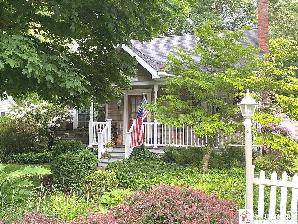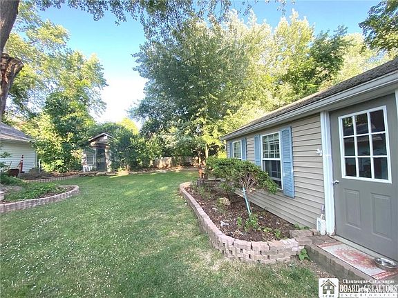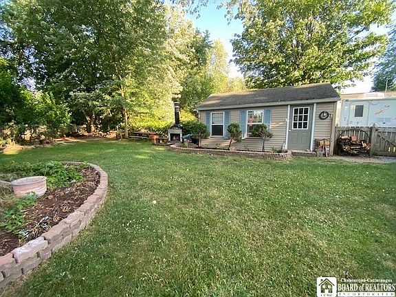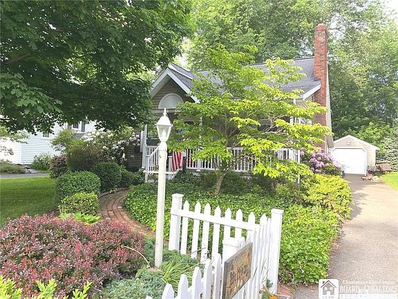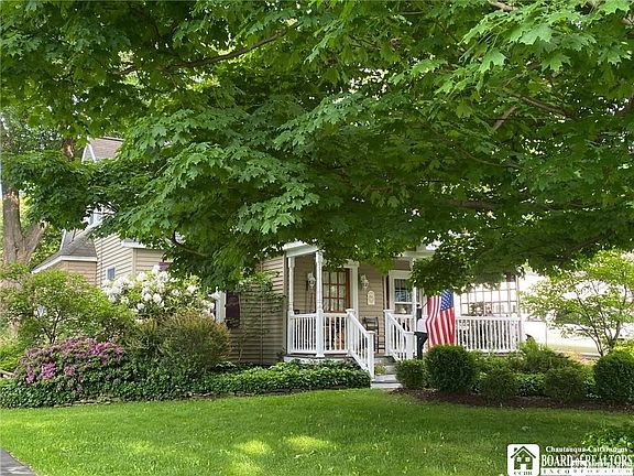 Sought after neighborhood, 1 block from playground, 1/2 mile from SUNY Fredonia campus; 1/2 mile from downtown Village of Fredonia parks & shops!! Take a tour of this cape cod style Fredonia home...from the driveway take the cobblestone walkway to a warm & inviting front porch where conversation & cold drinks await! As we walk inside,a handy entry foyer & coat closet opens into a cozy living room with fireplace. A sunny dining room branches out in other direction. Glass French door takes you through to a center space where 1st floor bedroom, 1/2 bathroom & spindled staircase to 2nd floor are. Behind dining room is kitchen with eating island & granite counters. 2 steps down is sunken family room & laundry room. 2nd floor features 2 bedrooms & full bathroom. This home is outfitted with hardwood flooring on 1st & 2nd floors, warm steam heat & lots of bright windows. Full basement offers great storage. Deep backyard has nice surprises:a man cave/cabin & outdoor wood stove! Appliances included & window treatments. This home is truly charming! Per Owner: Tax records show sq. footage without rear family room, and dormer addition. Brand new roof just done- October 2022!