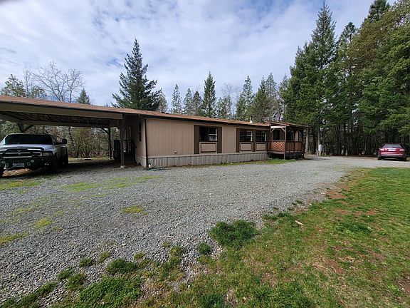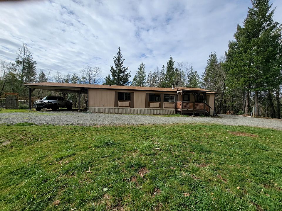 Off the beaten path in a nice area of the valley. Park like entry leads to this 5 acre mostly level parcel. The manufactured home is 3 bdrm 2 bath, laundry room with a wood stove and back deck. There is an attached carport, garden area and a separate general purpose structure for an additional 544 sq ft for hobbies or? In addition to the wood stove the home has central heating and air conditioning. There are lots of trees on the property but also plenty of sun exposure for your garden. The well is on record at 40 gpm when drilled.