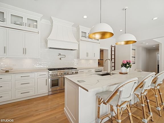 Welcome to an unparalleled fusion of luxury and functionality in this stunning 6BD/5.2BA home on nearly a half acre (100x187) with nearly 6000 sq ft of living space above grade seamlessly combining exceptional design along with a comprehensive, full gut renovation in 2021. The unique and flexible floor plan offers a fabulous option for one floor living with an incredible first floor primary suite plus 2nd floor primary option. Surpassing the standards of new construction, be greeted by brick and slate roof exterior plus clean lines and modern elegance all showcasing the designer touches, premium high-end finishes, lofty ceilings, exquisite millwork, incredible lighting, naturally stained 4" white oak flooring and graceful staircases. With walls of windows across the back of the house and loads of natural light throughout, the layout seamlessly integrates formal and casual living spaces, including a breathtaking two-story family room, a striking architecturally designed dining room and a living room with French doors leading to the outdoors. At the heart of the home, the custom kitchen shines as a masterpiece with premium elements, top-of-the-line appliances, white and walnut cabinetry, a spacious quartzite island with breakfast bar seating, and a massive sunlit breakfast area offering expansive views of the lush surroundings. Complementing the way to the entertaining spaces are a well-appointed wet bar and extra-large butler's pantry with refrigeration, abundant storage, stylish lighting and beautiful tile designs. The home's versatility shines with a fantastic first-floor primary suite, with dual walk in closets and a Kohler showcased bath with heated floors. Alongside is another first floor bedroom & full bath that can be used as a playroom, in-law suite or potential workout room - all adding to the home's allure. For ultimate convenience, there is a command central office with exposed brick and glass metal barn door, a mudroom with custom built-in storage lockers, a walk-in pantry and an attached two car garage with staircase leading to the lower level dog wash station, craft room and ample storage. On the second floor, discover a spectacular second primary suite with an oversized walk-in closet and luxurious spa bath with double bowl vanity and heated floors, three additional private and generously scaled bedrooms each with beautiful attached baths and custom closets. Further enhancing the home's appeal and flexibility is the lofted recreation space, plus a lower level exercise room that offers a bright and airy space for all your workout needs. Outdoor terraces expand the home's entertaining capabilities with handsome brick patios overlooking professionally manicured grounds, lush gardens, mature trees, and fragrant blossoms. Located in a premier walkable area, this breathtaking retreat epitomizes luxury and ultimate convenience, making it an ideal haven for discerning homeowners. With 2021 new electrical, plumbing, architect grade windows and doors, copper gutters and roof, and three updated zoned furnaces and condensers, this stunning fully renovated property provides a comfortable lifestyle and true perfection!