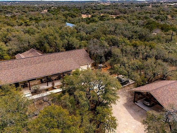Views! 20 Ag Exempt - Hunting permitted acres with Home and Guest Home. The main house spans 2,631 sq ft & features 3 bedrooms & 2 bathrooms. It boasts an open-concept living, dining, & kitchen area w/expansive windows, a stunning stone fireplace, high ceilings w/impressive beams, tile floors, & custom alder cabinets throughout. Large primary w/his & her closet space. Enjoy the views from the wraparound porch. The beautiful 1,647 sq ft guest house includes a full kitchen, dining & living areas, along w/2 bedrooms & 2 bathrooms. Above the guest house is a 35x11.5 bonus room that can be used as an office, storage, workout space, or an additional bedroom. There's also a covered patio & a 8x12 storage shed. Additional storage is provided by a 23x15 shed w/electricity and a 23x12 covered outdoor storage area. The property also features a 16x15 deck w/expansive hill country views, a well house w/extra storage, a 24x26 carport, & a large 16.5x27.5 garage. The main house & guest house are surrounded by fencing. This property is truly remarkable, offering a wealth of exceptional features! The drive is serene and just minutes from Kerrville. Built by Rhodes construction.