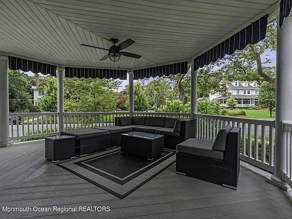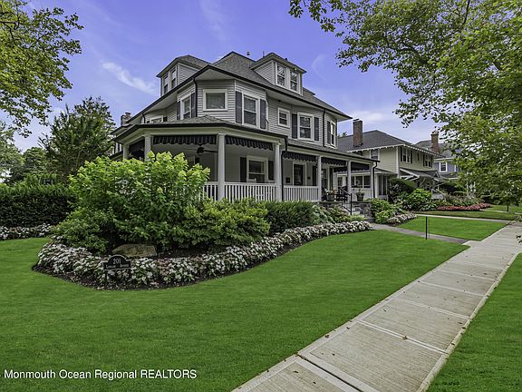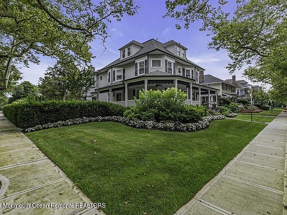 Just two blocks to the North End Pavilion. Quintessential Spring Lake Home with all the sprawling charm and beauty of yesteryear but completely renovated! Step up to the gorgeous front porch reminiscent of times gone by and enter into the large foyer with decorative fireplace. The gourmet kitchen features a butler's pantry with wine fridge. All quartz counters. Kitchen features a 6 burner Thermador gas stove and dishwasher and Sub Zero refrigerator. Spacious living room, dining room, and family room with decorative fireplace just add to the ease you will find entertaining in this special home. The first floor powder room has marble flooring. The second floor has four bedrooms, and three baths. (cont) The very large master bedroom has a walk in closet while the master bath features a double vanity and a large stall shower. The laundry room is also on the second floor. The third floor has two bedrooms, one bath with original tub and large stall shower, and a study. There is another full bath in the basement. Above the spacious two car garage you will find a large guest room. The underground sprinkler system has its own well. So much more to see in this distinct home!