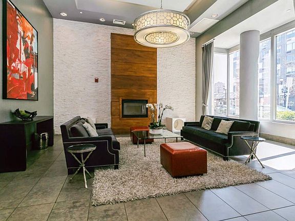 Deeded garage parking is available for an additional cost please inquire with the listing agent for pricing and availability. Experience contemporary living in this spacious 1-bedroom, 1-bathroom home on the 14th floor of Gulls Cove in Downtown Jersey City. Soaring 9.5-foot ceilings and oversized windows flood the space with natural light, highlighting beautifully refinished hardwood floors throughout. The open-concept layout features a chef's kitchen with granite countertops, custom lighting, and premium stainless steel appliances, seamlessly flowing into a large living and dining area perfect for entertaining or relaxing at home. The bright and airy bedroom includes large windows, high ceilings, and a walk-in closet for ample storage. Additional conveniences include central A/C and an in-unit washer/dryer. Gulls Cove offers an impressive suite of amenities, including a fitness center, 24-hour doorman, landscaped courtyard, children's play area, community room, and on-site retail. Located just moments from the Light Rail, Grove Street, and Exchange Place PATH stations, commuting is effortless. Don't miss your chance to enjoy comfort, style, and convenience in one of Jersey City's most desirable buildings.