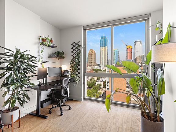 Bright and oversized 1-bedroom, 1-bath condo in the heart of Downtown Jersey City. Located in the full-service Gulls Cove community, this east-facing home features floor-to-ceiling windows with panoramic views of the city skyline, Hudson River, and Liberty State Park. Enjoy an open-concept layout with hardwood floors throughout, soaring ceilings, and a large walk-in closet. The modern kitchen is equipped with stainless steel appliances, granite countertops, a gas stove, and under-cabinet lighting. Additional highlights include an in-unit washer/dryer and central air.