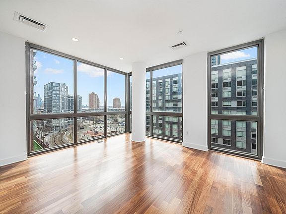 Located in a full-service building with a 24-hour doorman, fitness center, Peloton room, landscaped patios, and a club room. Conveniently near Marin Blvd Light Rail, Grove PATH, ferry, Turnpike, and Liberty State Park for effortless commuting.
