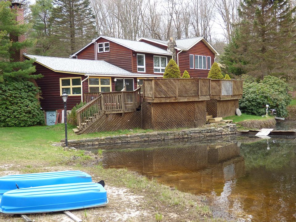 NO MORE SHOWINGS. This meticulously 5 bedrooms, 4 bathrooms crafted home is nestled on 15 acres of the most picturesque land with its own PRIVATE LAKE (this makes this property so unique and rare as it's practically unheard of in the Poconos). This gorgeous over 4000 square feet rustic log home is a jewel of an estate. Own a piece of heaven with amazing lake views and admire the beauty of the surrounding forest. This home comes with heated IN-GROUND POOL and a BOAT DECK. This paradise is just a short drive away from the main roads, Rt 80, and few minutes drive to Camelback and Kalahari resorts. Given the location of this unique property, it could easy be a primary residence, vacation retreat. This is a great home for family living and entertainment!