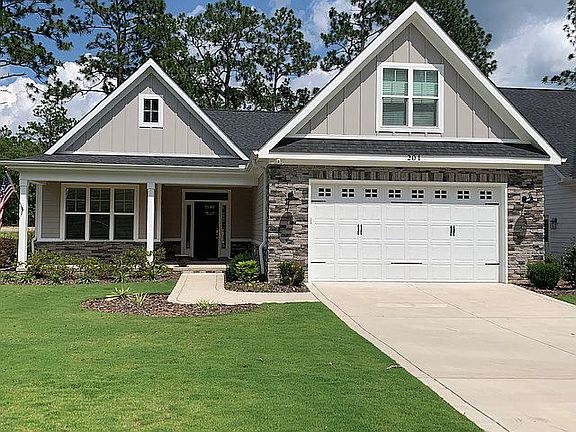 This move-in ready home, part of the Cottages at Midland, welcomes you with a modern open floor plan with 3 bedrooms and a dedicated office (possible 4th bedroom). The wide covered front porch is perfect for rocking chairs. A large foyer invites guests into the open living room with a ship-lap fireplace wall or to the private office with large windows and a set of glass double doors. The white kitchen includes a gas cooktop and oven, stainless dishwasher and plenty of cabinet space and granite counter tops. The attached dining space has two walls of windows to the back yard and a French door to the covered back porch. The primary bedroom is light and bright and includes two walk-in closets and a large bath with double sinks, granite counters, soaking tub, large tiled shower, linen closet and a separate water closet. Another bedroom with an en-suite bath is on the opposite side of the house. The carpeted third bedroom is on the second floor and includes a large walk-in closet and en-suite bath with penny tile floor and granite countertops. A valuable MidSouth/Talamore social membership (at a minimum) is required; includes dining options, a pool and two championship golf courses. Deed Restricted home - information regarding Mid South/Talamore membership should be directed to Donna Earnheart 910-692-5884 x132. **Agents may bring prospective buyers.** Email directly wellsjeffrey24@gmail.com