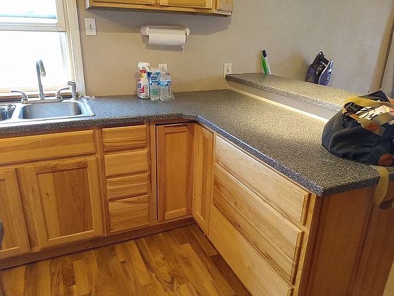 Small town living in Western Kansas. Beautiful home with lots of extras. Large master bedroom and bathroom. Dual vanities, marble shower and heated tile floors. Wood stove, large kitchen with lots of storage. Basement is finished with built in bar.
