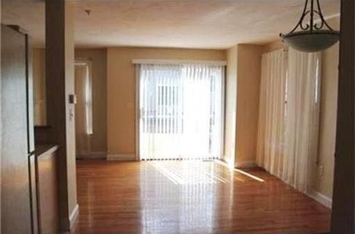 End unit townhouse at Village Estates awaiting your decorating touch! This home features: Open floor plan concept with bright Living room/Dining room combo corner fireplace, hardwood floors and a sliding doors leading to a brick patio overlooking the common area and the manicured lawn. Fully equipped kitchen has maple cabinets, refrigerator, stove, built-in microwave, and dishwasher and garbage disposal. Second floor has 3 very generous sized bedrooms including a large master suite with cathedral ceilings and master bath with Jacuzzi tub. Also, 2 good size bedrooms with plenty of storage. Design your own basement as you like or keep it as a great storage area. Attached garage and deeded space next to your unit. Walk to horn pond. Beautifully landscaped condominium managed by an offsite management company and an owner's board of trustees. Conveniently located to I93, I95 shopping center, restaurants, and bus stop at your door.
