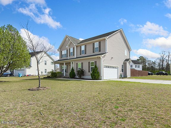 Seller offering $5000 in concessions. Wow. This well maintained home nestled in Harvest Plantation is truly a must see. Enjoy a country living feel while not being so far out in the country. The home is in between the Township of Richlands and the City of Jacksonville, 15 minutes to the front gate of New River and about 25 minutes to the Wilson gate of Camp Lejeune. As soon as you enter the home, you are welcomed by beautiful tile floors and a country charm. You are then greeted by a kitchen with granite counter tops, stainless steel appliances, and a seating counter top to enjoy the Carolina mornings. Upstairs you will find a spacious master bedroom with three closets, a stunning master bath, two additional bedrooms, and a bonus room. The back yard is fully fenced with plenty of room for the little ones and/or furry ones to play, has a powered shed with a 6ft workbench for the yard equipment, and a patio for the grill. There is a 5ft6in workbench in the garage. The popular Mike's Farm is just down the road as well. Due to recent hail storm damage the home will have a new roof, new siding, new gutter downspouts, several areas of trim work and flashing, a freshly re-finished fence, and the solar panels are being removed permanently.
